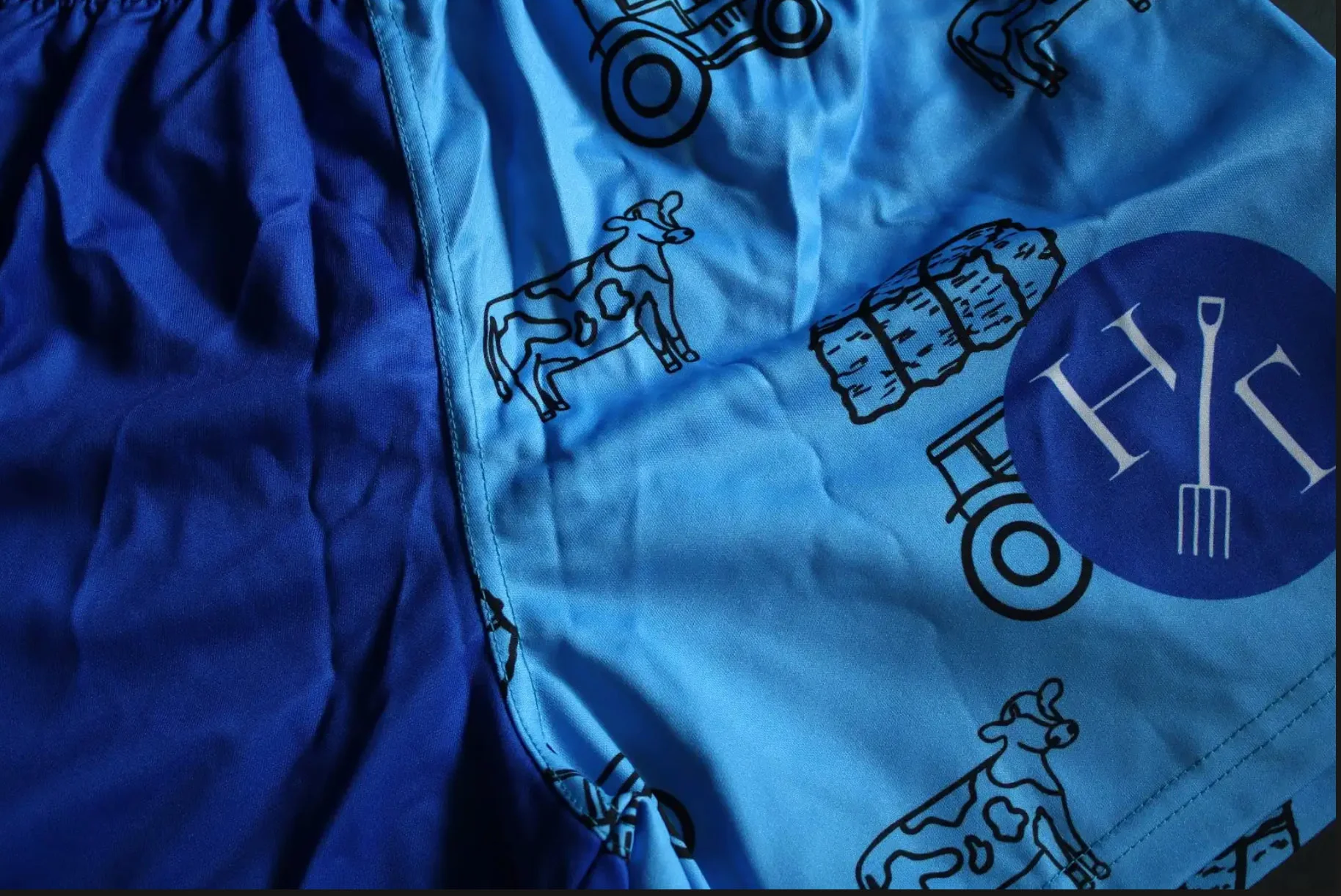 With a light and dark blue combo that screams “I’ve got paddock game and main character energy,” one leg boldly says “Farmed” (so you don’t have to), while the other flashes the Hay There logo and the iconic #GetFarmed — just in case people weren’t sure you’re the real deal.